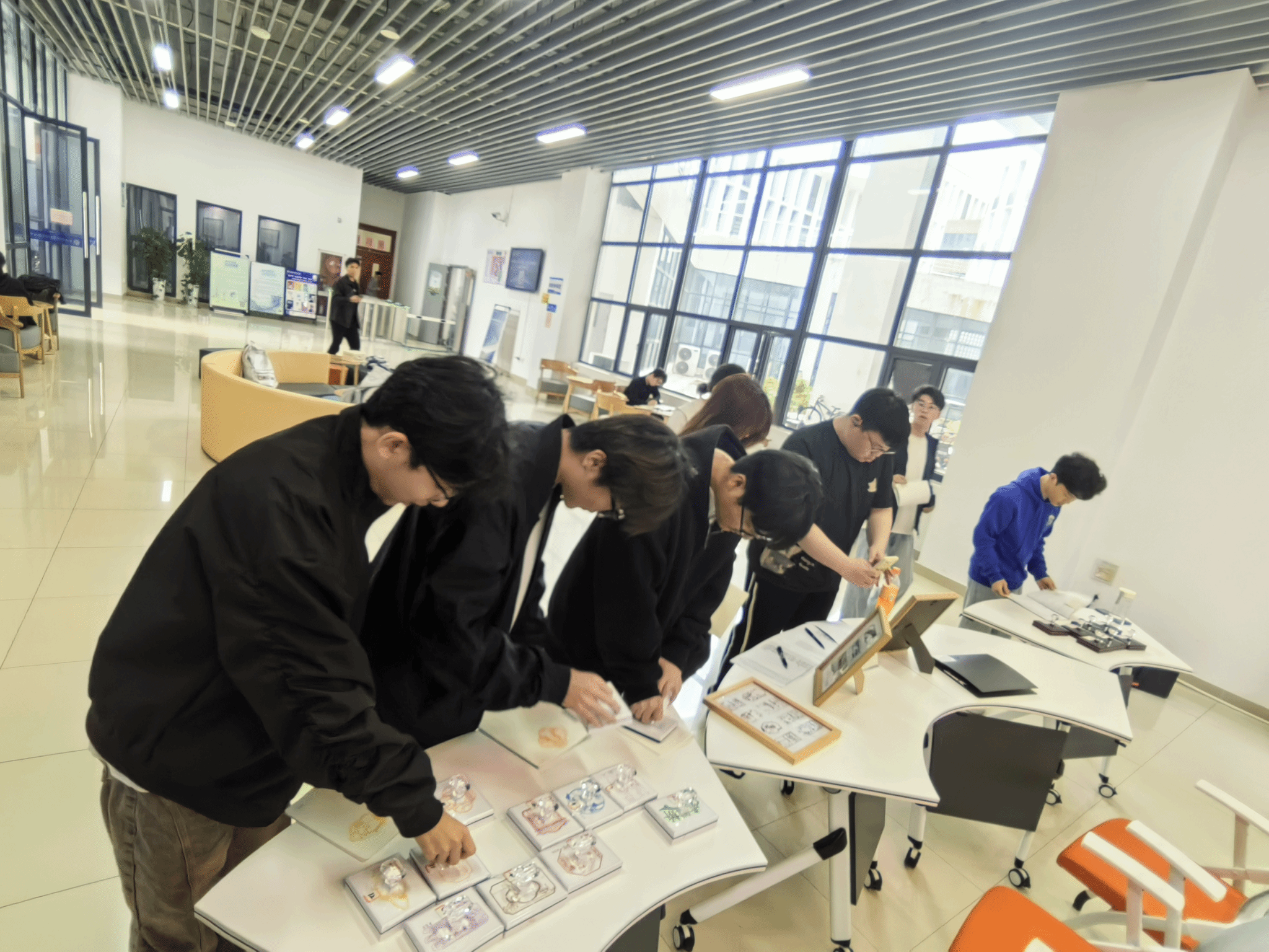 签到环节中,同学们有序排队打卡,浏览话剧剧本与精美画本。19枚印章依次落下,仿若穿越时空的使者,向大家诉说着这段凄美婉转、荡气回肠的合肥佳话。