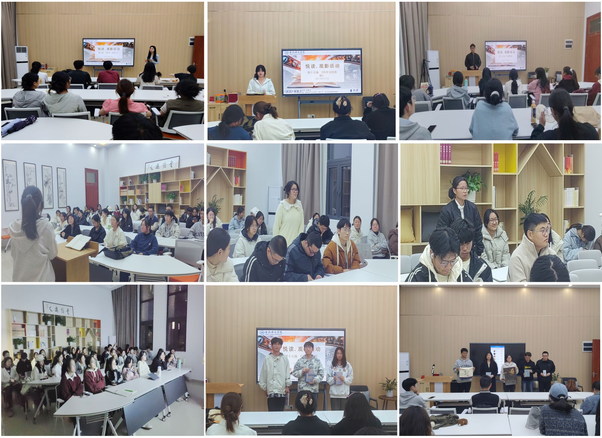 本网讯 日前,本学期“阅+历”读书讲堂“悦读·观影”系列活动在滨湖校区落下帷幕。活动聚焦“书香光影,启智润心”目标,以丰富多元的主题、深刻的人文内涵和生动活泼的形式,吸引了同学们积极参与,营造了“爱读书、读好书、善读书”的校园书香氛围,有效促进了大学生人文素养的提升,为落实立德树人根本任务、培养担当民族复兴大任的时代新人贡献文化力量。