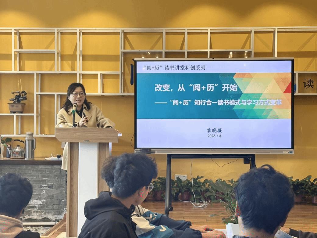 从人文浸润到科创赋能,“阅+历”读书讲堂不断迭代升级,形成独具影响力的阅读育人品牌。下一步“阅+历”模式将持续深化,与新质人才培养深度融合,以阅读筑基、以实践赋能、以科创增效,培养更多适应数智时代需求的复合型创新人才。