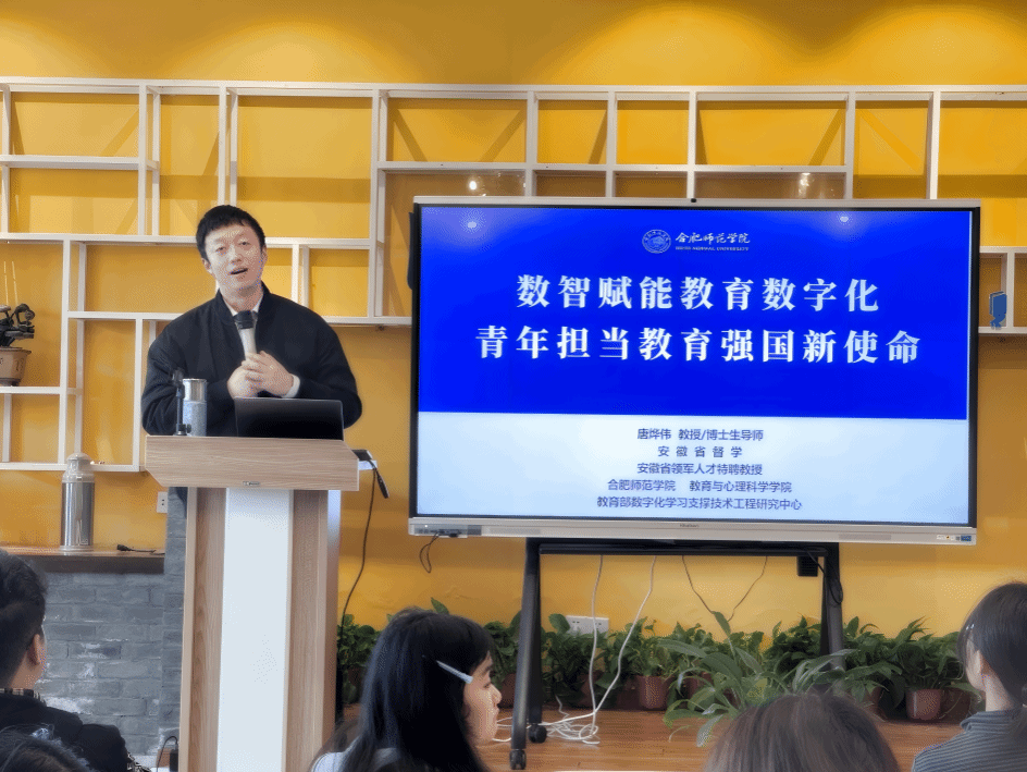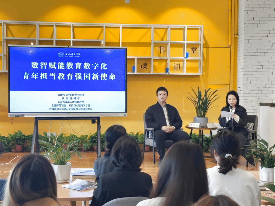 本网讯 为深入推进教育数字化转型,引导青年师生把握智能时代教育发展机遇,4月1日下午,我校“阅+历”读书讲堂科创系列讲座之二在锦绣校区顺利开讲。本次讲座以“数智赋能教育数字化,青年担当教育强国新使命”为主题,由教育与心理科学学院院长、唐烨伟教授主讲,校阅读推广人、宣传部周倩老师主持。