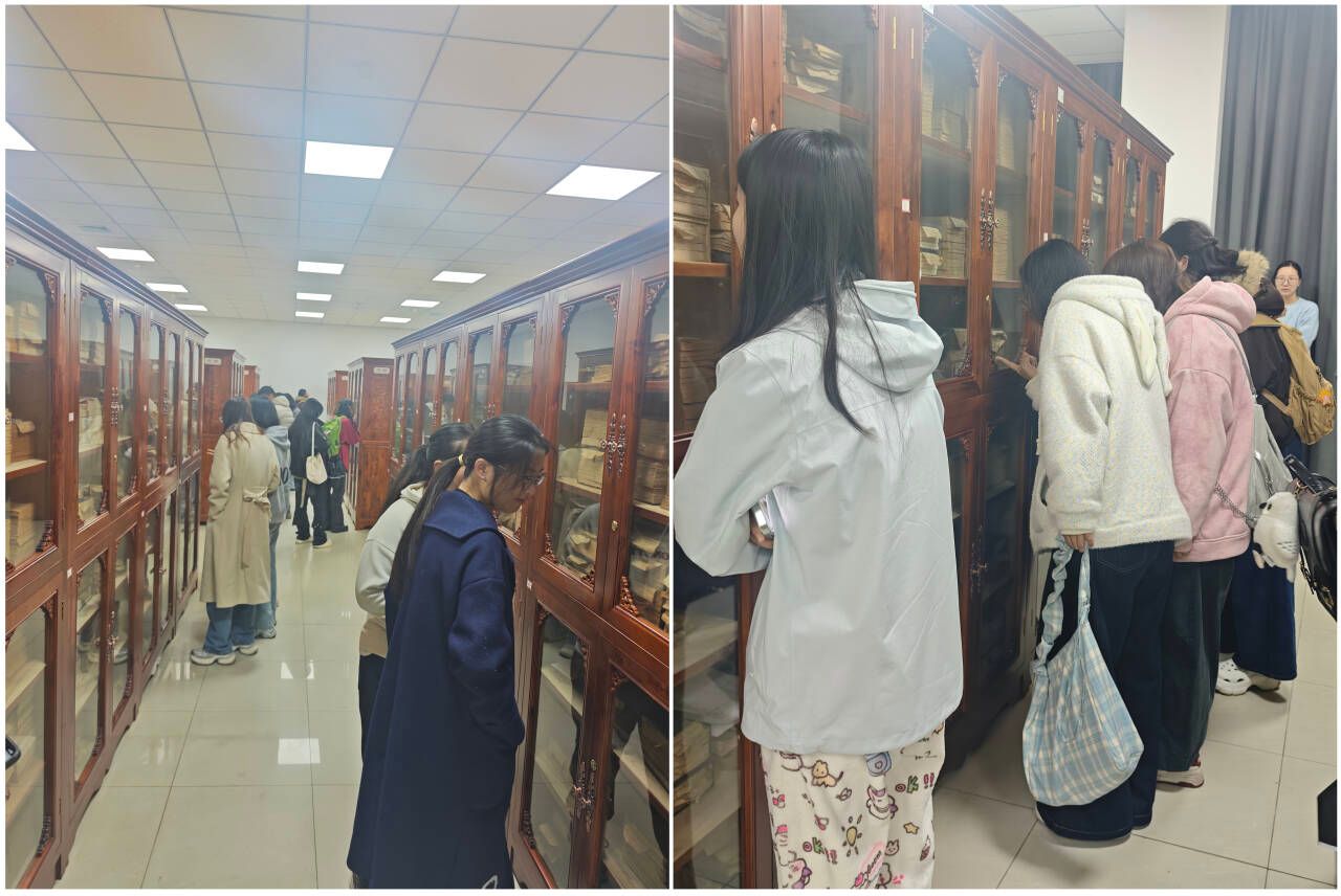 活动现场古韵盎然,精彩纷呈。在古籍阅览室,同学们近距离参观馆藏明清、民国时期刻本与影印本古籍,在 “内藏外展” 的特色文化空间里,感受古籍千年文字的温度,直观了解古籍保护、收藏与研究价值,深刻体会图书馆特色馆藏的文化底蕴。